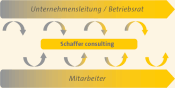 Als Mittler zwischen Arbeitgeber und Arbeitnehmer ist der Betriebsrat ein zentraler Ansprechpartner, wenn es um das Thema Personal geht. Aus diesem Grund bezieht Schaffer consulting diesen selbstverständlich in alle Modelle und Schritte mit ein. Denn vor allem die Betriebsräte sind es, die eine wesentliche Entscheidung für ihre Belegschaft treffen, tragen und umsetzen müssen.